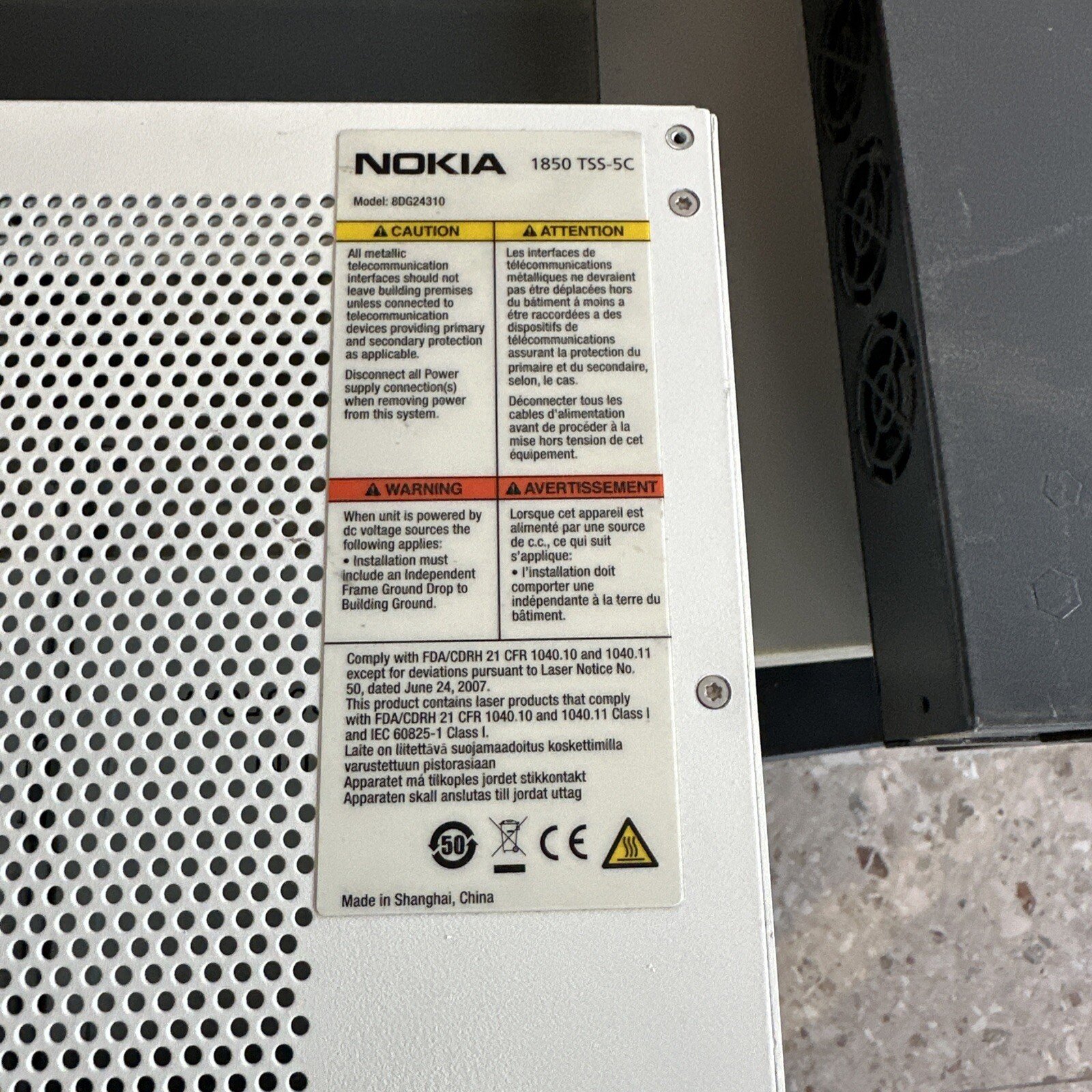 Alcatel LUCENT Nokia 1850 TSS-5C 8DG24310 Commutateur de service de transport.