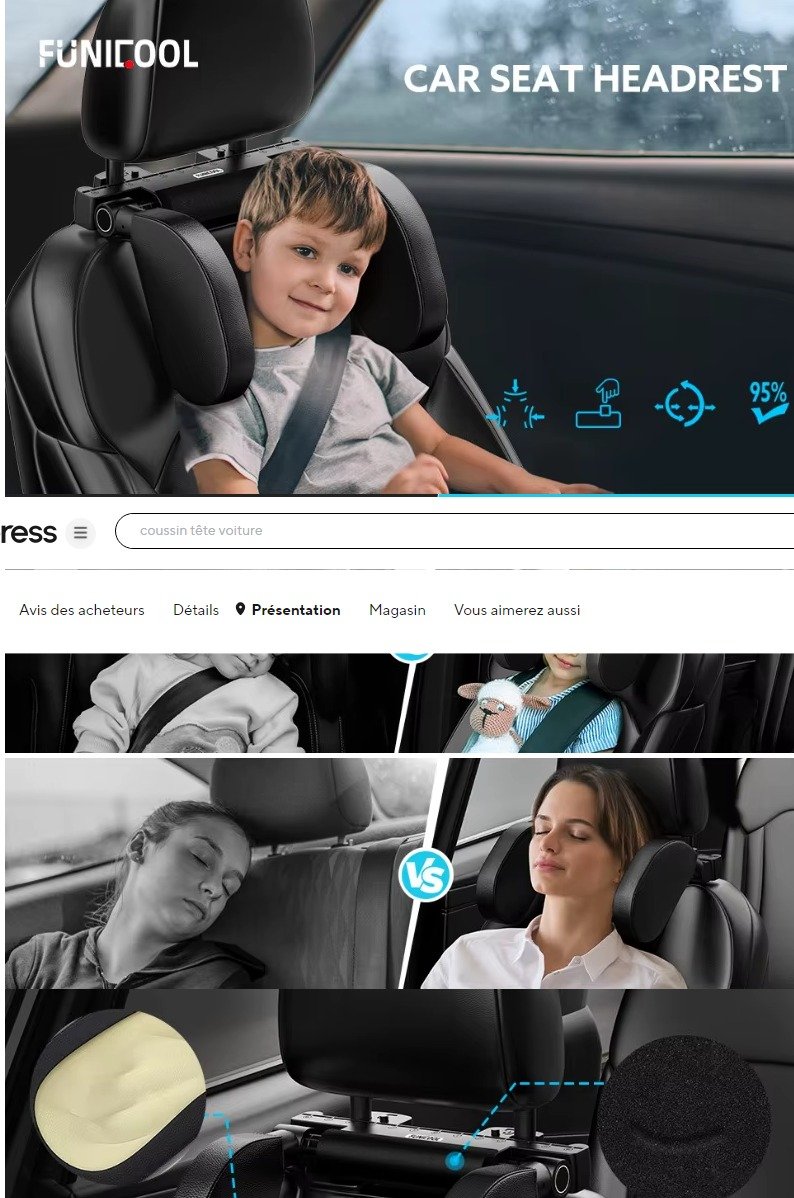 Voyage plus confortable : Dites adieu aux trajets en voiture fatigants. Un long trajet en voiture est fatigant et peut même provoquer des maux de tête, des douleurs cervicales et lombaires, ce qui est très préjudiciable aux passagers, en particulier aux enfants. Grâce à la protection complète de ce coussin de voiture Funicool, vous dormirez plus confortablement et en toute sécurité.