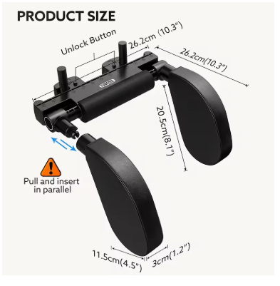 Installation en un clic : aucun outil requis. L’appuie-tête du siège auto est doté d’un mécanisme de déverrouillage rapide amélioré. Il suffit d’appuyer sur le bouton de déverrouillage et de le relâcher pour le fixer solidement aux différentes barres de siège auto. Remarque : lors de la fixation et du retrait des coussins d’appui-tête latéraux, veillez à ce que les fentes soient parallèles aux inserts de la barre arrière.