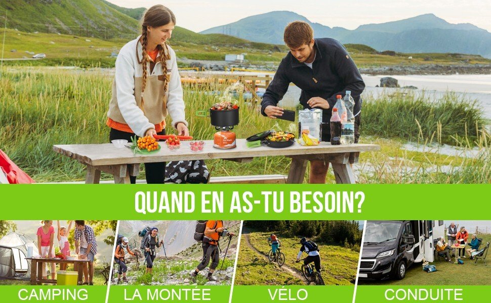 - Ce set vous offre la solution une solution idéale pour faire bouillir de l’eau et cuisiner des aliments en plein air, en camping et vous assurera du bonheur lors de vos activités extérieures.