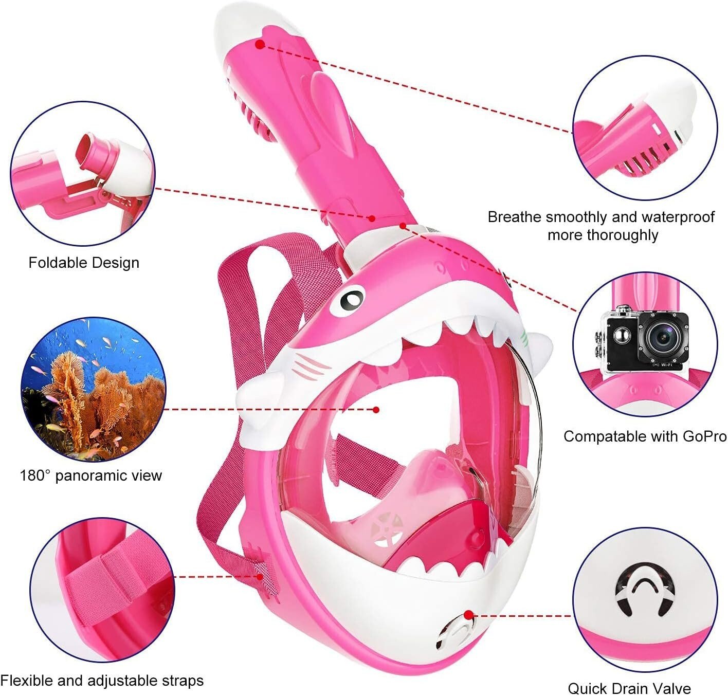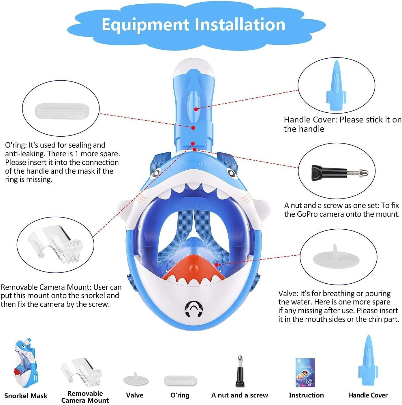 - Idéal pour les enfants et support amovible pour les caméras Ce masque de plongée conçu par dessin animé pour les enfants, équipé d’un support de caméra amovible pour enregistrer le monde sous-marin fantastique et partager avec vos amis. de plongée pour enfants.