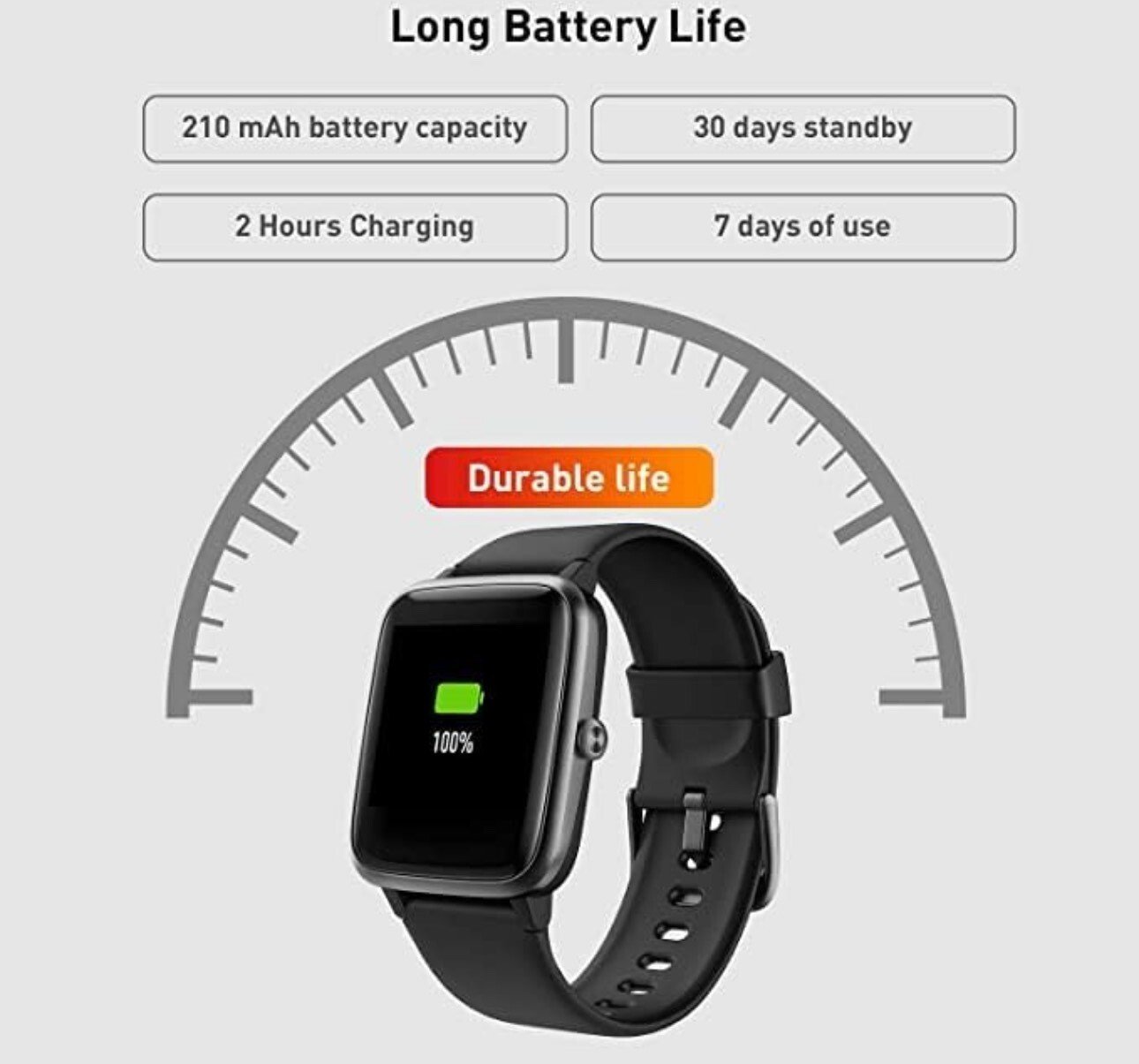 🎁 Etanchéité IP 68 et batterie longue durée  : étanchéité jusqu’à 50 m avec un niveau IP68, permettant une utilisation toute la journée et pendant les séances d’entraînement. Équipée d’une batterie de 210 mAh, une seule charge offre jusqu’à 10 jours d’utilisation ou 30 jours en veille.
