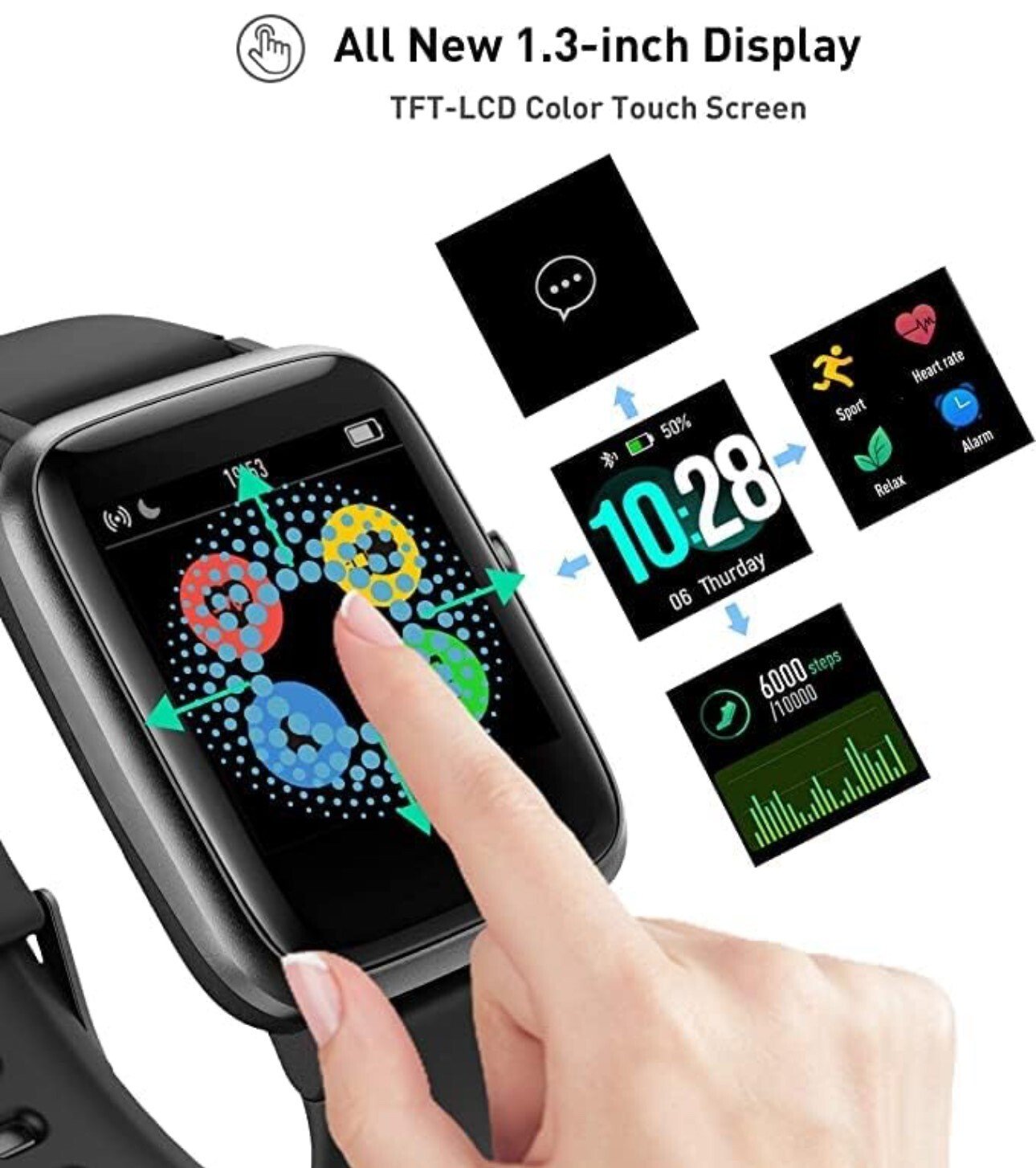 Montre connectée pour hommes, femmes  unisexe avec 4 cadrans fonctionnels que vous allez apprécier. Vous pouvez facilement naviguer entre différents cadrans pour accéder aux diverses fonctions de la montre.