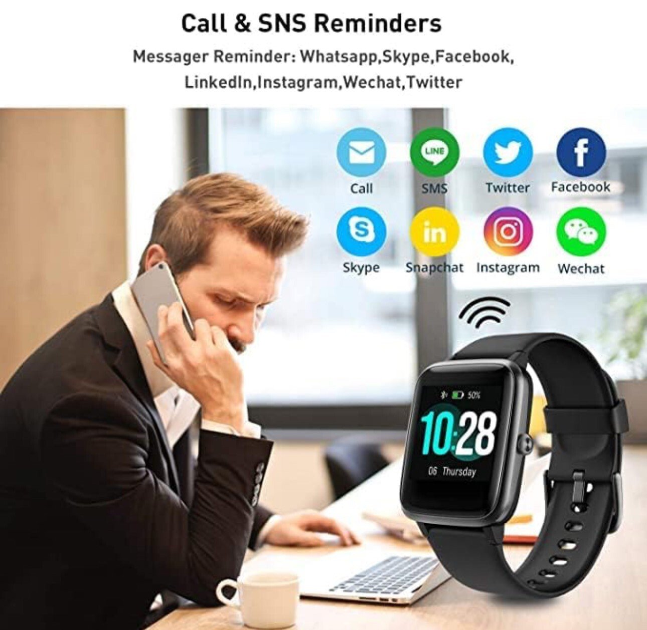 🎁 Notifications, applications et GPS : Le GPS se connecte via votre téléphone et fournit des statistiques de course en temps réel. Connectez le bracelet de fitness à votre téléphone. Alertes SNS : Facebook, Twitter, WhatsApp, Instagram, LinkedIn, Skype et autres applications mobiles. Si votre téléphone reçoit un appel, un SMS ou un message SNS, la montre vibrera pour vous avertir afin que vous ne manquiez jamais un appel ou un message.