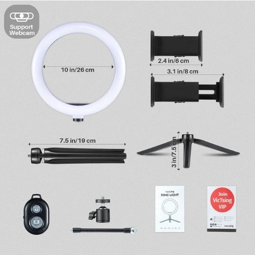VICTSING – BH472 Anneau Lumineux 10″ avec Trépied, 3 Modes, 10 Luminosité, Anneau Luminux avec Télécommande et Support Réglable